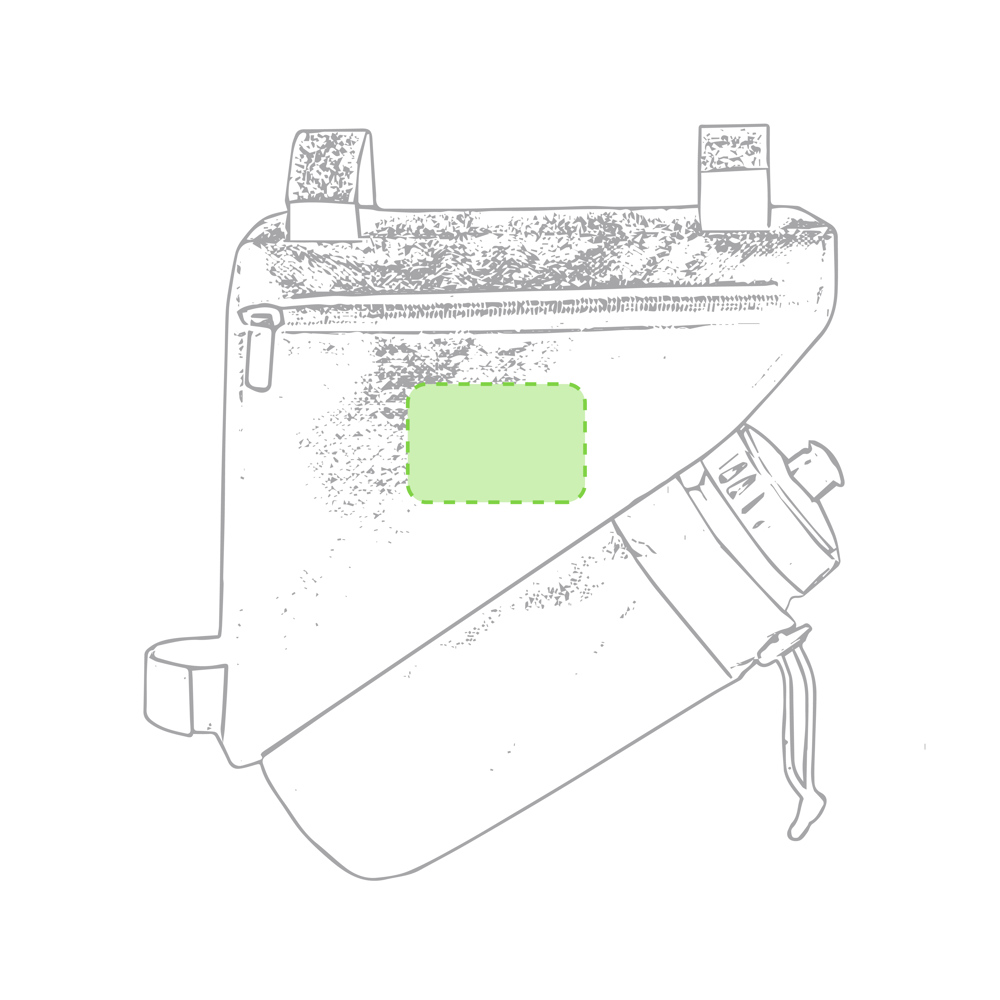 Fahrradtasche aus strapazierfähigem 600D-Polyester mit PVC-verstärkter Innenseite. Erhältlich in schwarz. Hauptfach mit Reißverschluss und universeller Anpassung an den Fahrradrahmen durch 3 Klettbänder. Wasserflaschenfach mit verstellbarem Kordelzug.